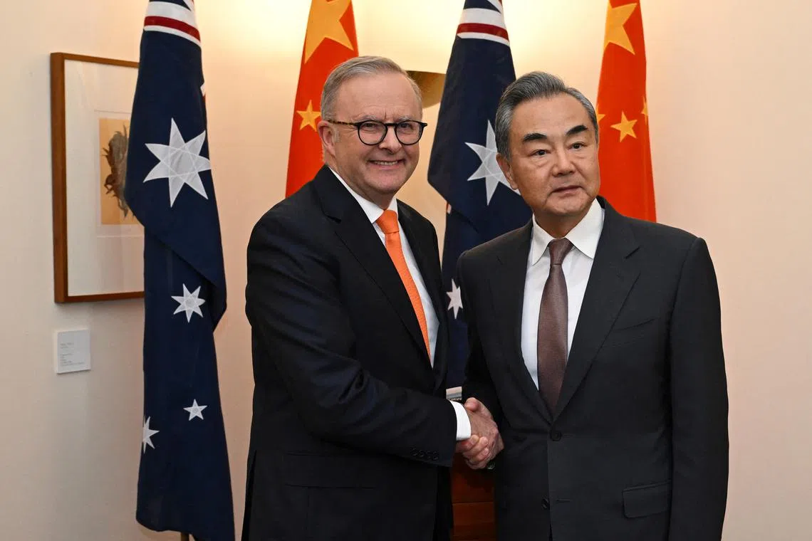 Australian Prime Minister Anthony Albanese meeting Chinese Foreign Minister Wang Yi in Canberra on March 20.