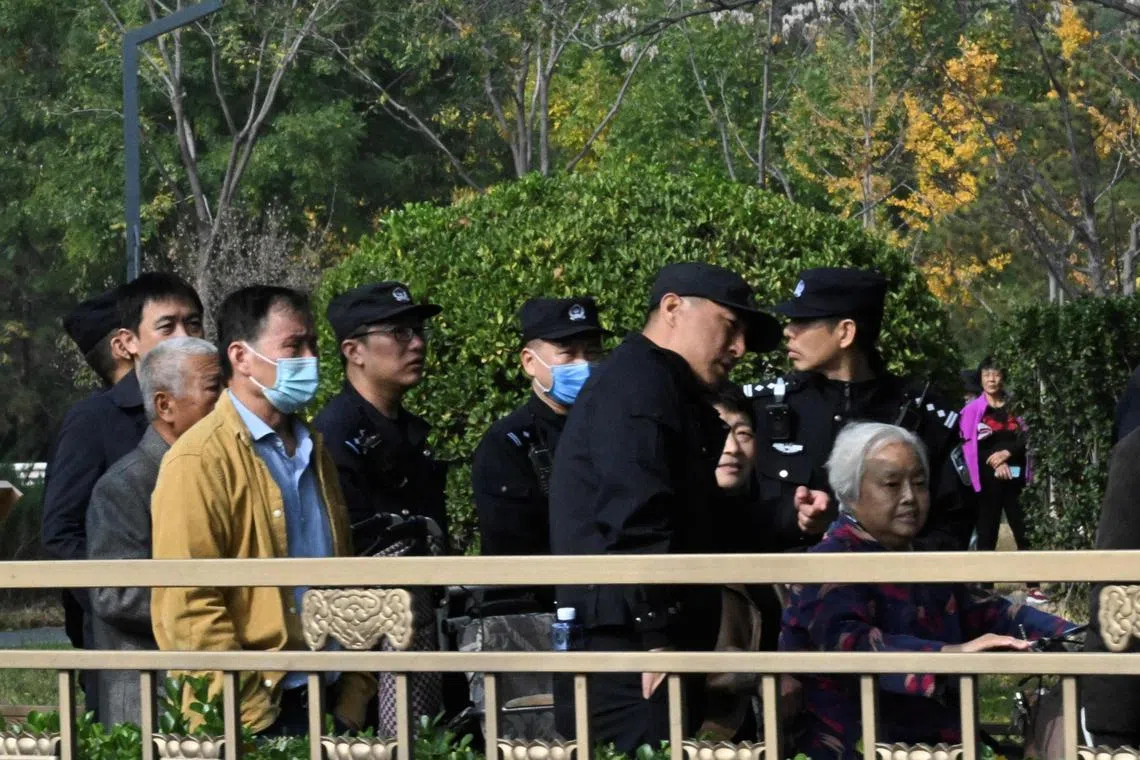 Security guards are seen at an entrance to the Babaoshan Revolutionary Cemetery where Mr Li Keqiang will be laid to rest.