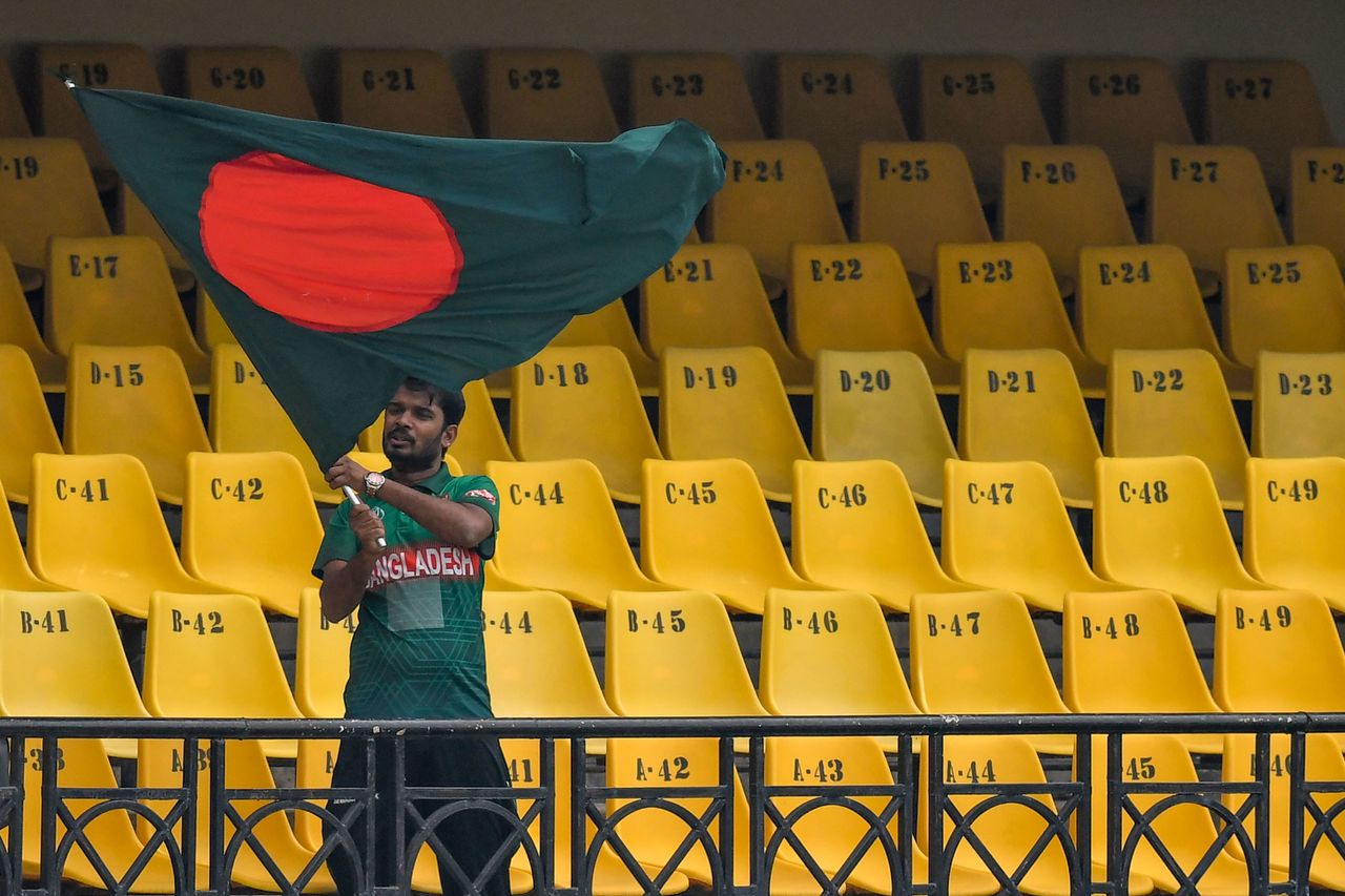 A Bangladesh cricket fan waves the country's national flag at the Holkar Cricket Stadium in Indore on Nov 13, 2019.
