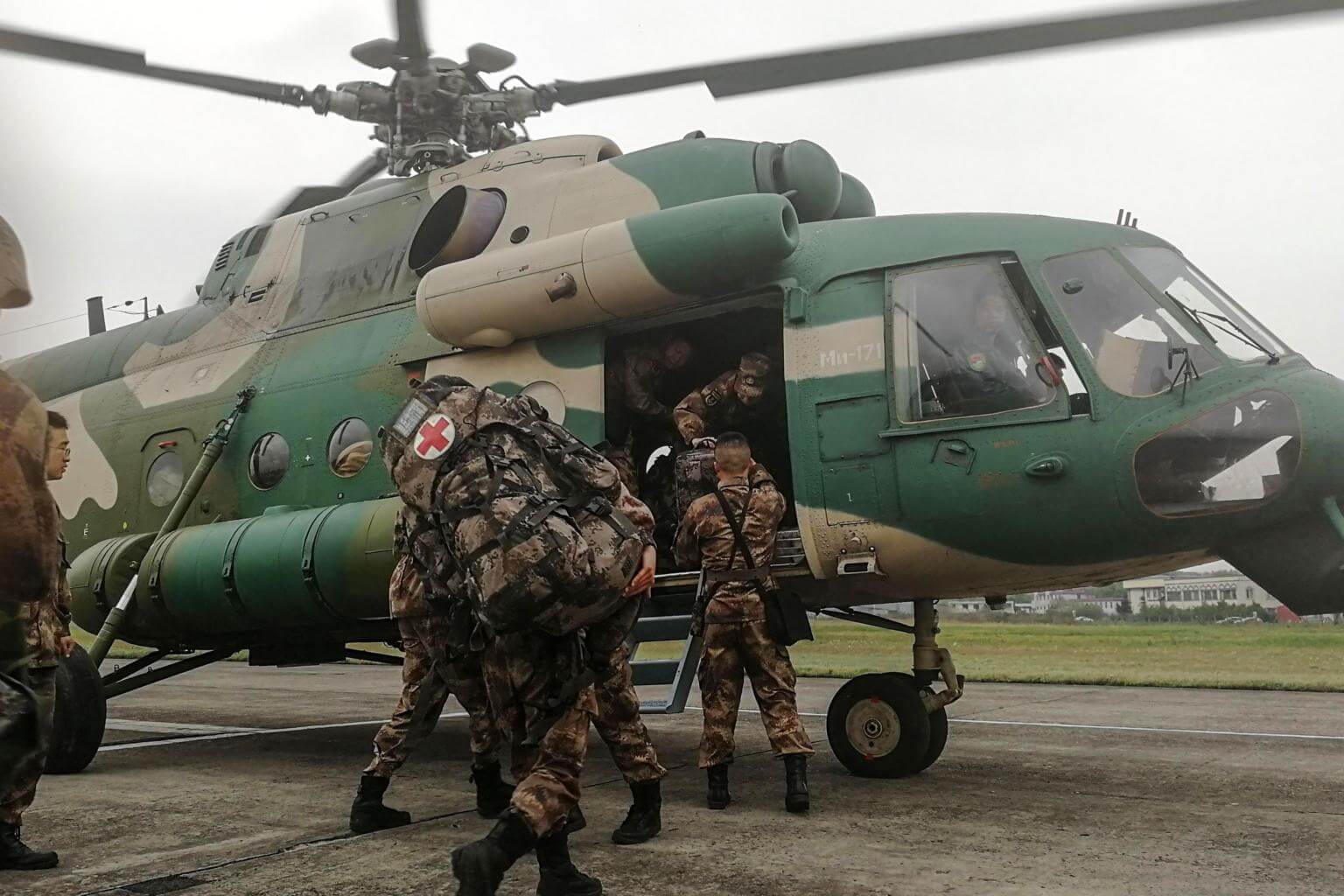 Two army helicopters, carrying a rescue team of 15 along with relief supplies, were sent on Monday morning to the scene, the 77th Group Army said.