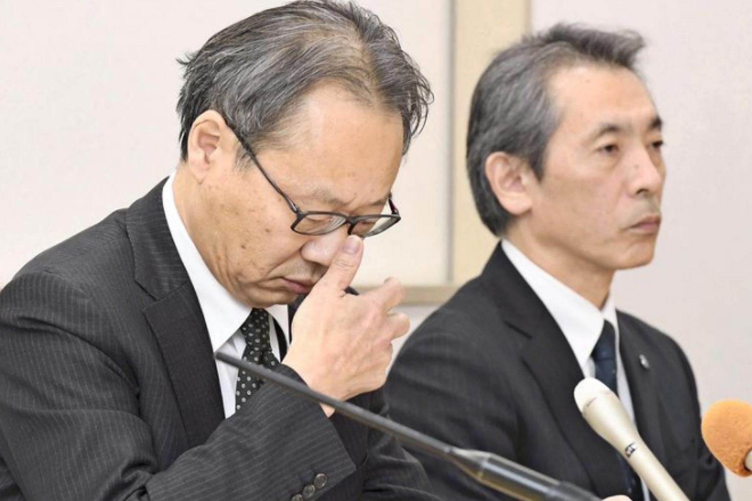 Osaka University executive vice-president Tadashi Kobayashi (left) speaking during a press conference in Suita, Osaka prefecture, on Jan 6, 2018.