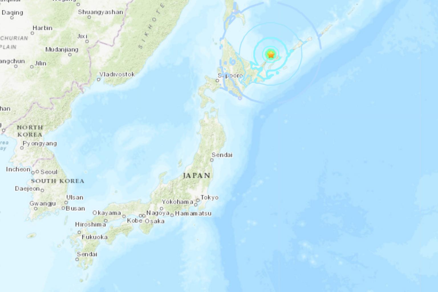 TOKYO (AFP) - A shallow 5.9-magnitude earthquake struck off Japan's northern island of Hokkaido on Monday (Nov 5), the US Geological Survey said.