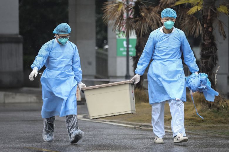 Hospital staff at the south building of the Wuhan Medical Treatment Centre on Jan 10, 2020.