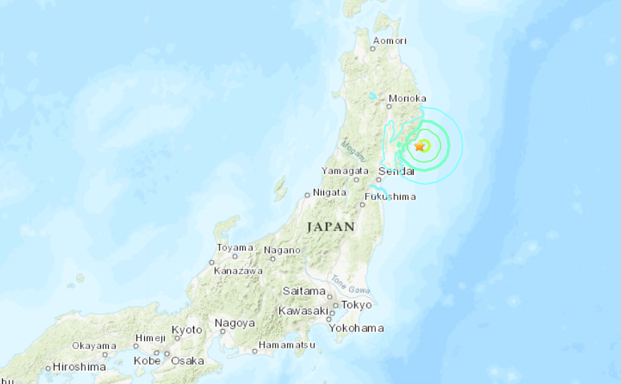 The epicentre of the earthquake was 41.7km beneath the Pacific seabed, less than 50km off the coast of Miyagi prefecture, the USGS said on its website, rating the risk of casualties and damage as low.