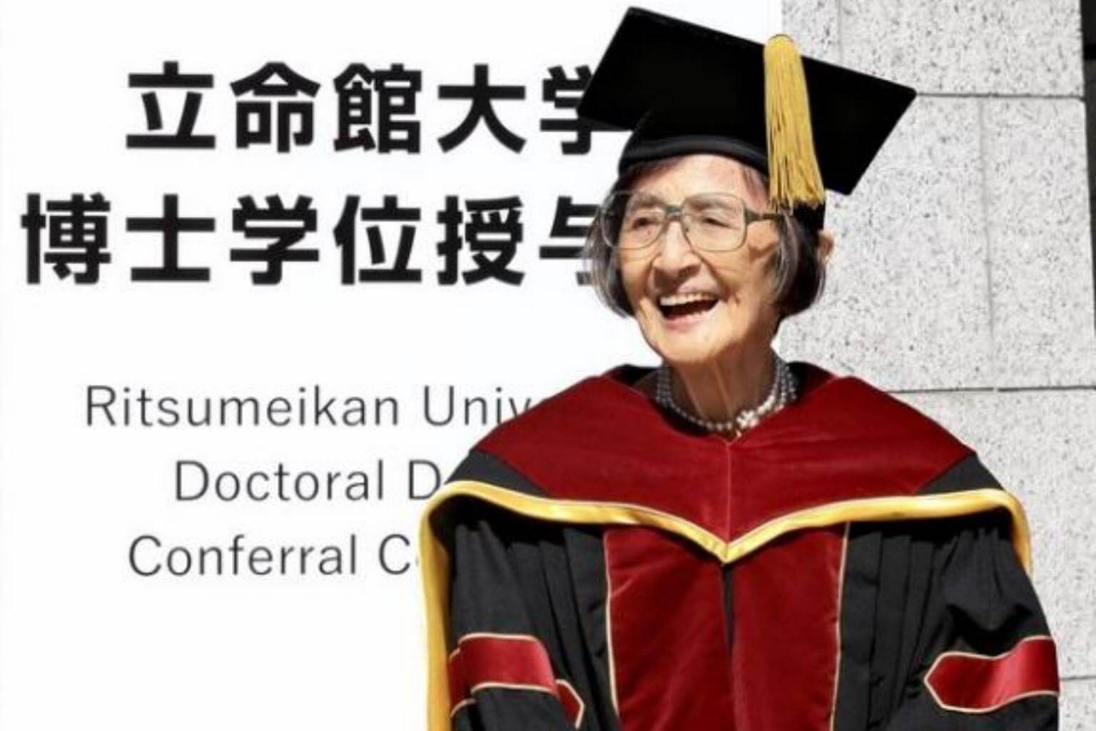 According to Ritsumeikan University, she is the oldest person to obtain a doctoral degree in literature (a field not limited to the study of written works) among Japan's universities.
