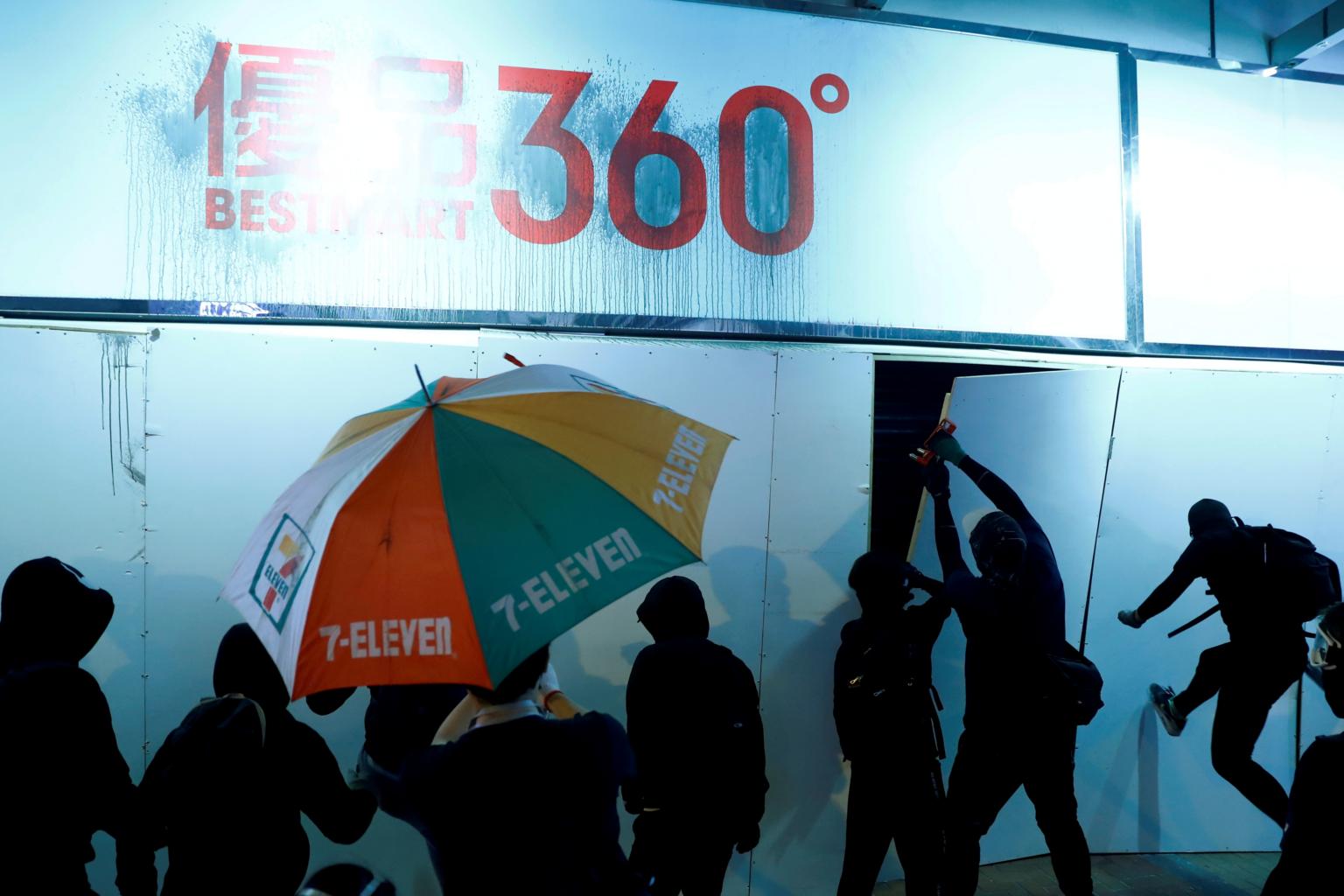 Protesters vandalise a Best Mart 360 shop during an anti-government demonstration in Hong Kong on Nov 10, 2019.