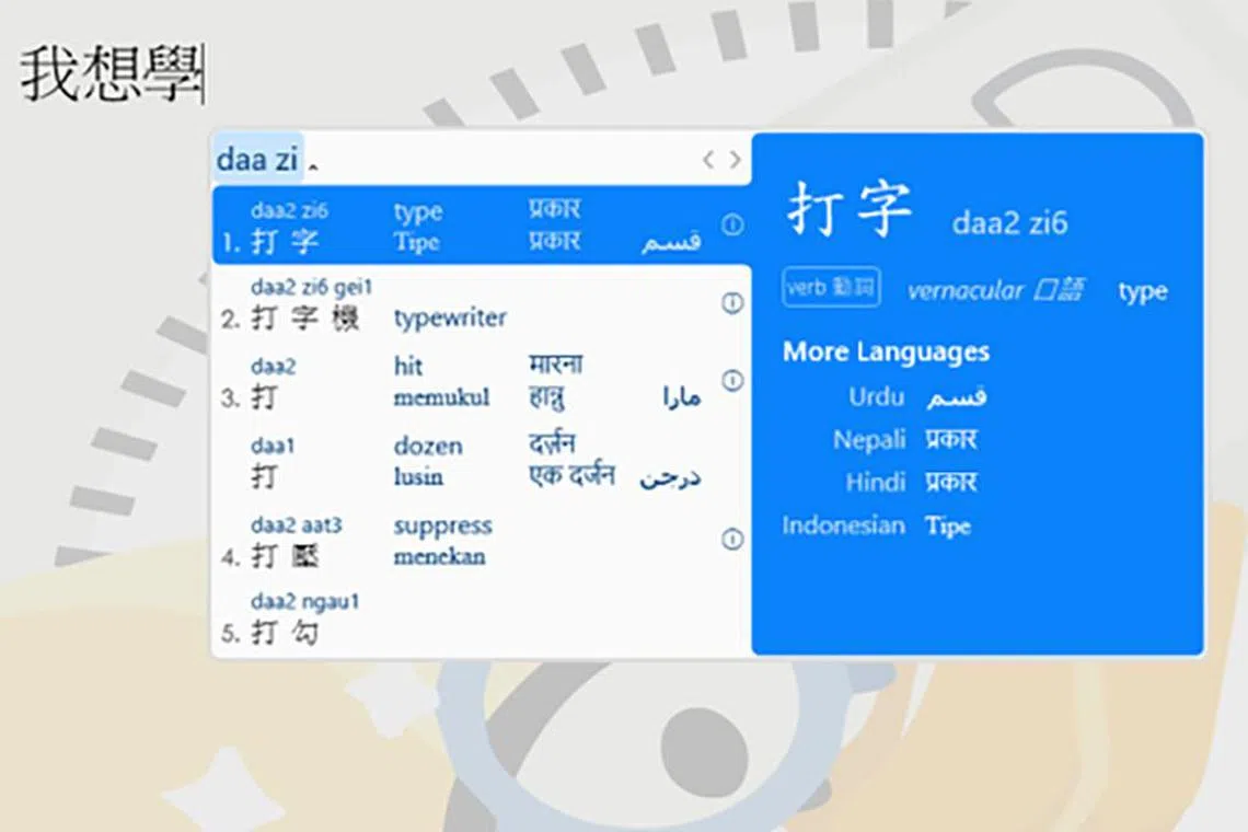 TypeDuck – which sounds like “type dak”, or “can type” in Cantonese – allows one to easily type Cantonese words using their approximate Jyutping pronunciations.