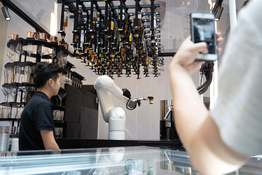 "What we have here is a collaborative effort. The robots handle about 80 per cent of the work. The last 20 per cent, which involves tasks such as garnishing and adding ice, is performed by humans. The garnishing process is absolutely important because it affects perceived value," said the 39-year-old, who used to be chief digital officer with Yum Brands.