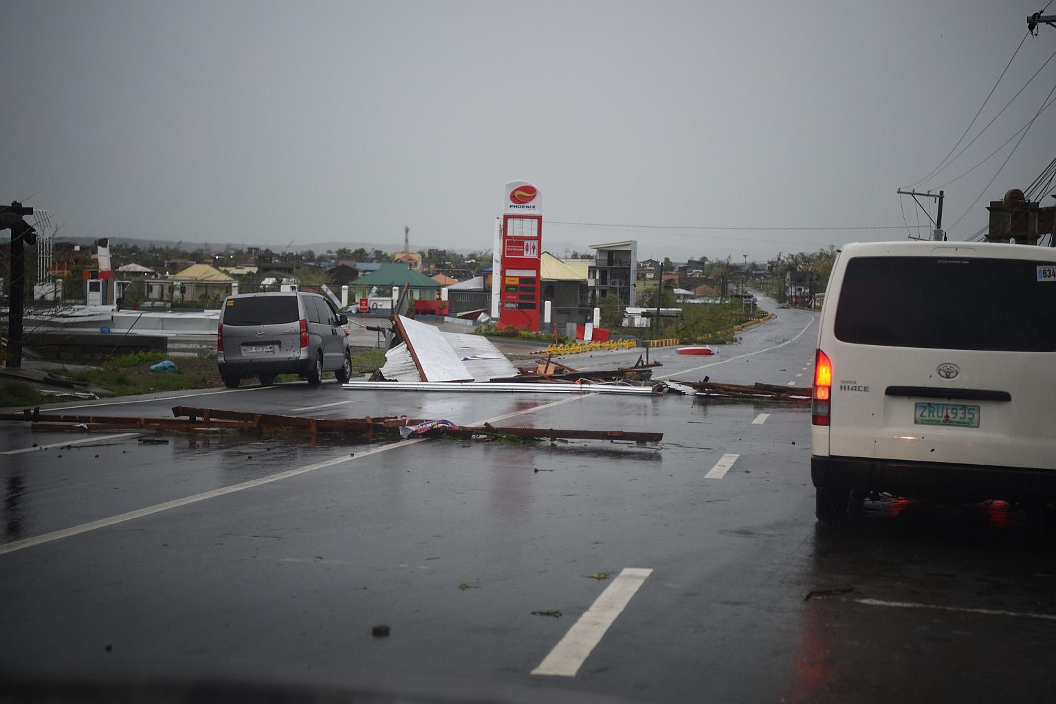 Debris scattered along a road after Typhoon Mangkhut hit the city of Tuguegarao in the Philippines, on Sept 15, 2018.