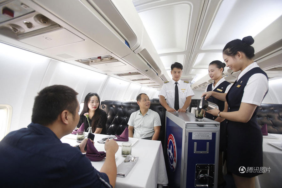 Mr Li said he got the idea of opening the restaurant after seeing an airplane-themed hotel four years ago in Sweden. After failing to find a suitable aircraft in China, he bought the retired aircraft from Indonesia for 35 million yuan.