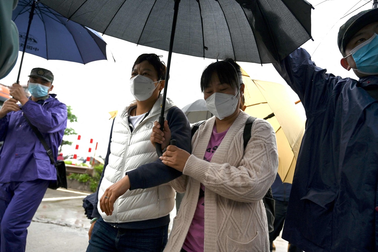 Dozens of family members congregated at the heavily-secured checkpoint leading to the site in Teng county in southern China's Guangxi region in pairs or small groups on Wednesday.