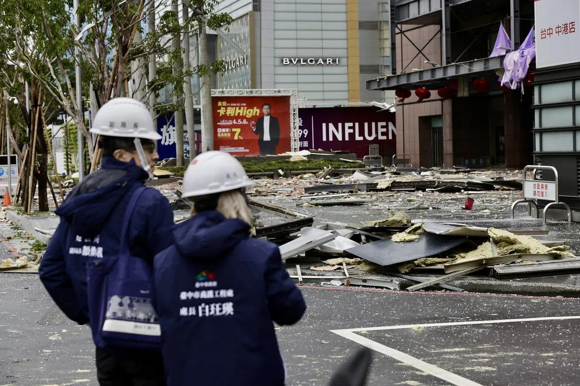 The hospital’s vice-president told local media that the family was struck by falling debris as they exited the Shin Kong Mitsukoshi building.