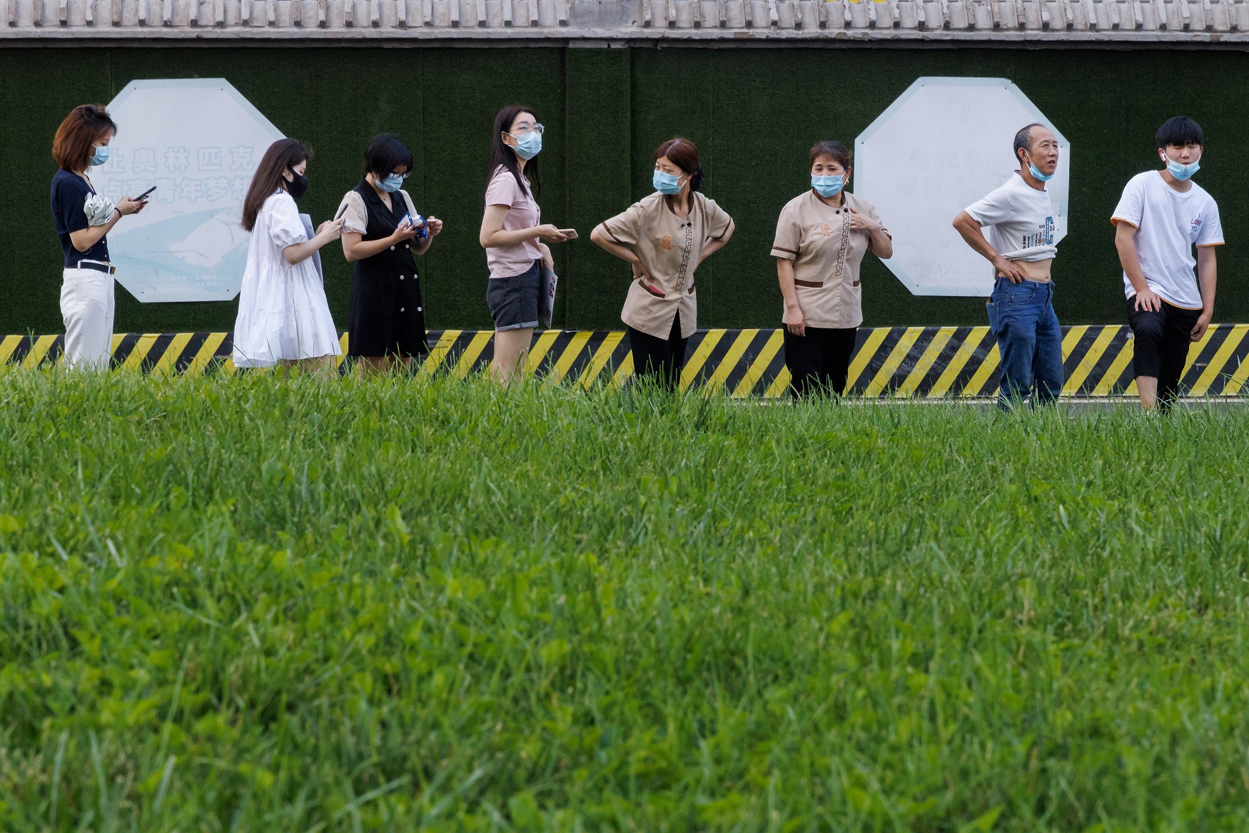 People line up for coronavirus tests in the Chaoyang district of Beijing, China.