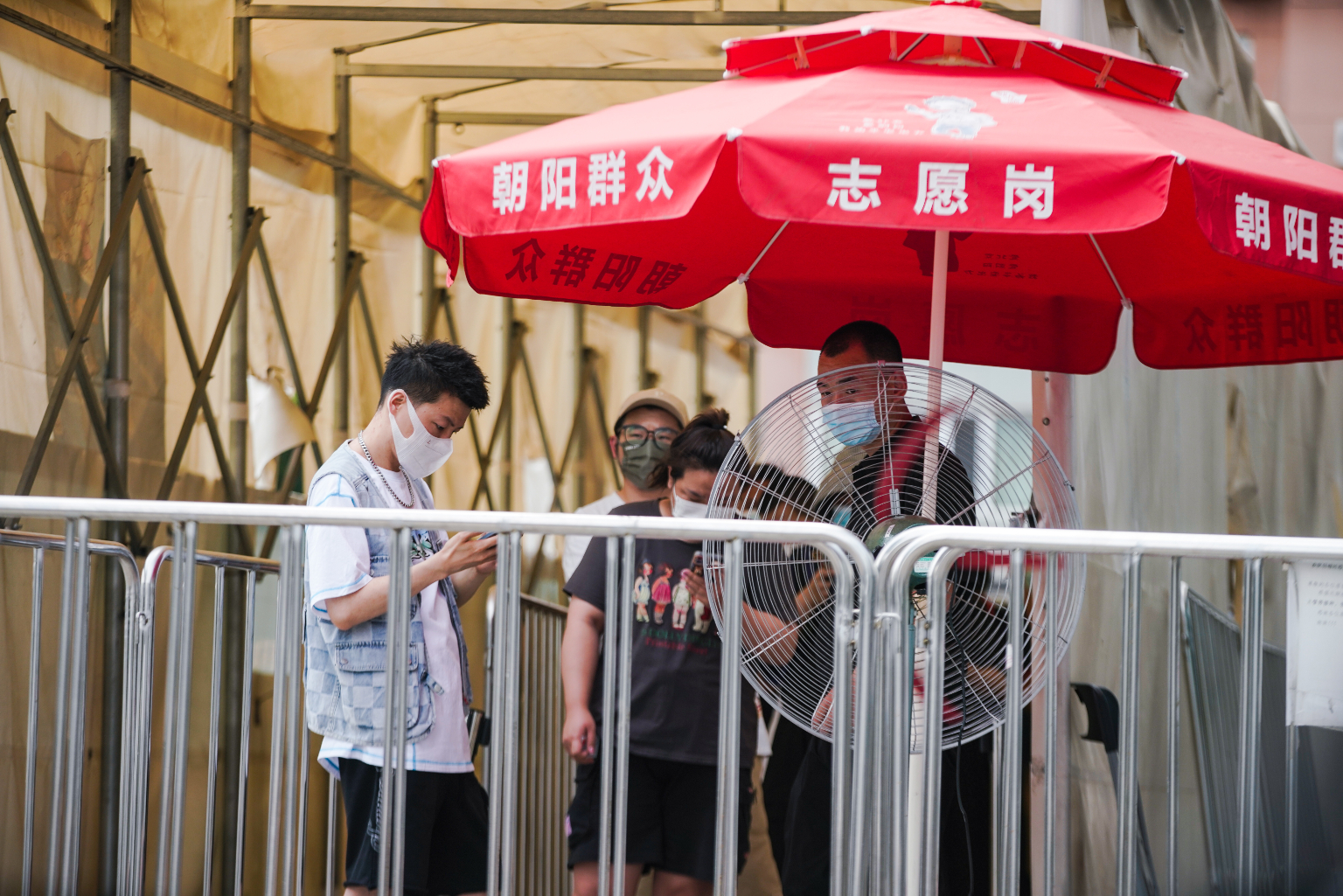 People line up to get vaccine shots against Covid-19 in Beijing, on July 8, 2022.