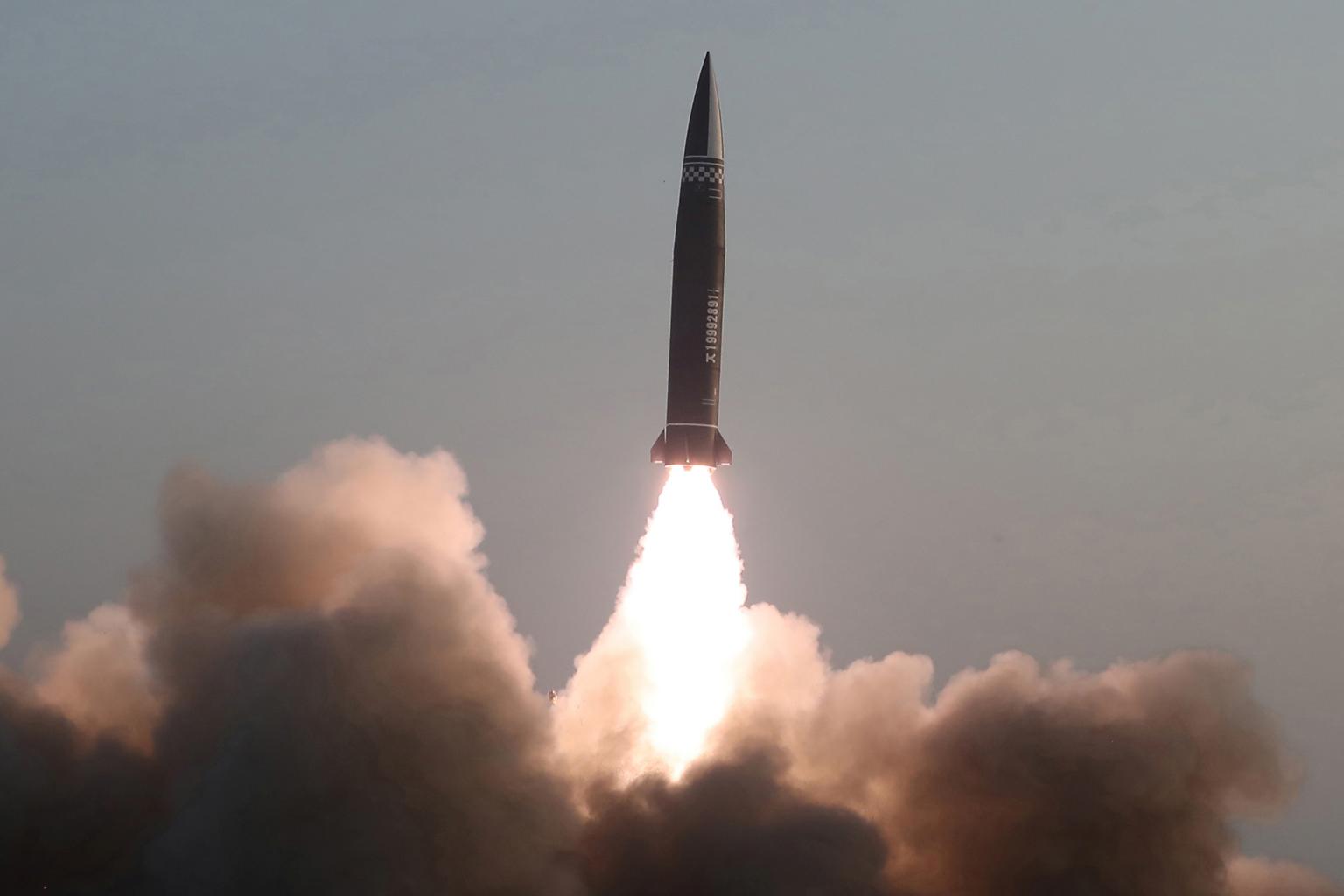 Japanese and South Korean officials said the missiles flew about 450km at an altitude of under 100km, a distance and trajectory suggesting they were similar to the nuclear-capable short-range ballistic missiles North Korea tested under the administration of former President Donald Trump.