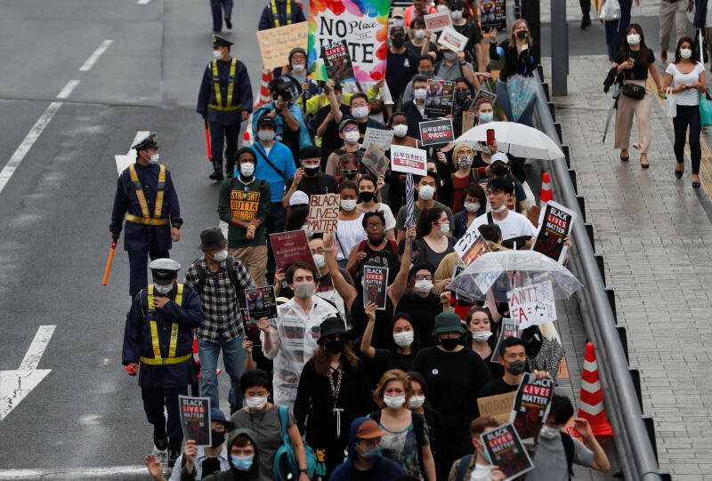 TOKYO (REUTERS) - Thousands of protesters in Tokyo took part in a Black Lives Matter march on Sunday (June 14), calling for an end to racial discrimination and police abuse after the killing of African American George Floyd in Minneapolis last month.