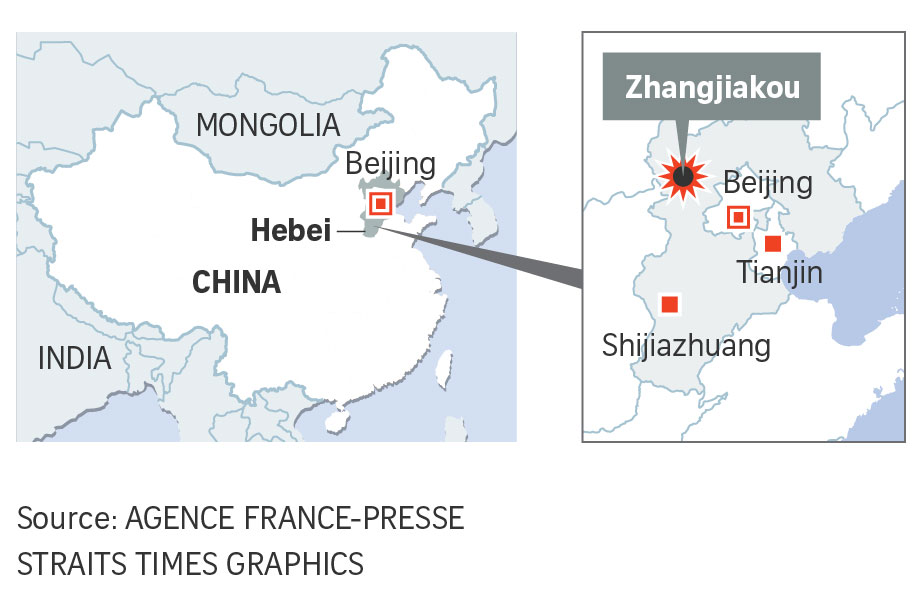 BEIJING (AFP) - An explosion and fire near a chemical factory left at least 22 people dead and 22 others injured on Wednesday (Nov 28) in a northern China region that will host the 2022 Winter Olympics, the authorities said.