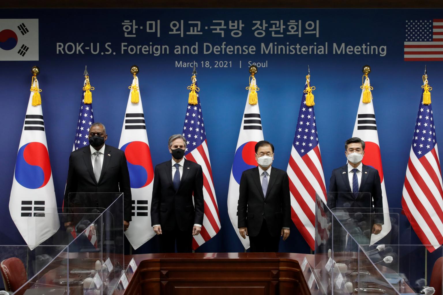 (From left) US Defence Secretary Lloyd Austin, US Secretary of State Antony Blinken, South Korean Foreign Minister Chung Eui-yong and South Korean Defence Minister Suh Wook at the Foreign Ministry in Seoul.