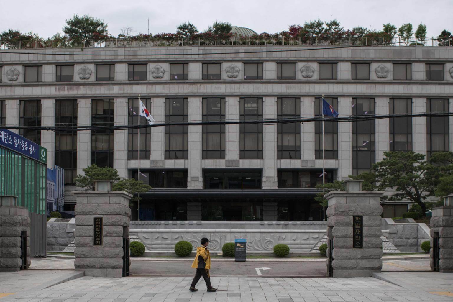 A man walking past the Constitutional Court in Seoul. The court is due to review a challenge from a doctor who was prosecuted for performing nearly 70 abortions.