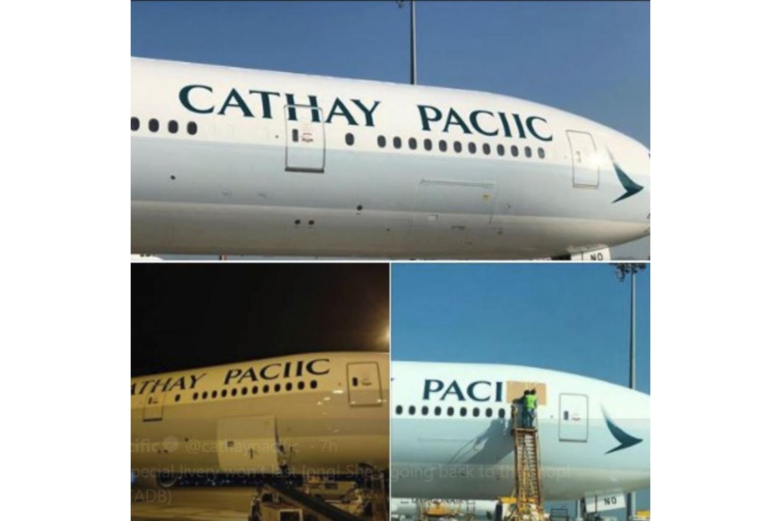Photos of the misspelt name of Cathay Pacific after a fresh paint job have emerged on social media, on Sept 19, 2018.