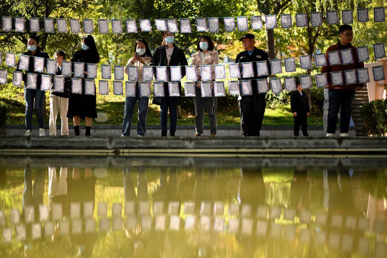 More than 100 singles attended a party-backed event in Jinan in China's eastern province of Shandong. Held in a city park, written profiles of guests detailing ages, fields of work and income were strung up between trees.