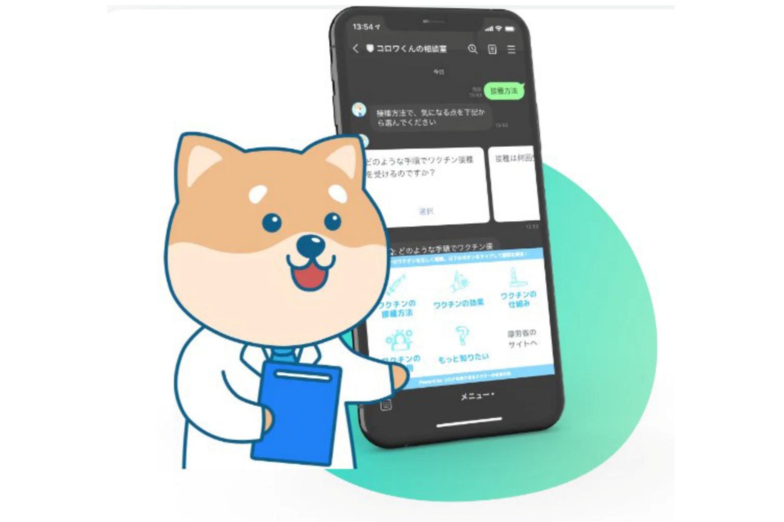 The dog, a Shiba-inu known as Corowa-kun - from the Japanese words for "coronavirus" and "vaccine" - wears a white doctor's coat and the app named for him gives automated answers to medical questions.