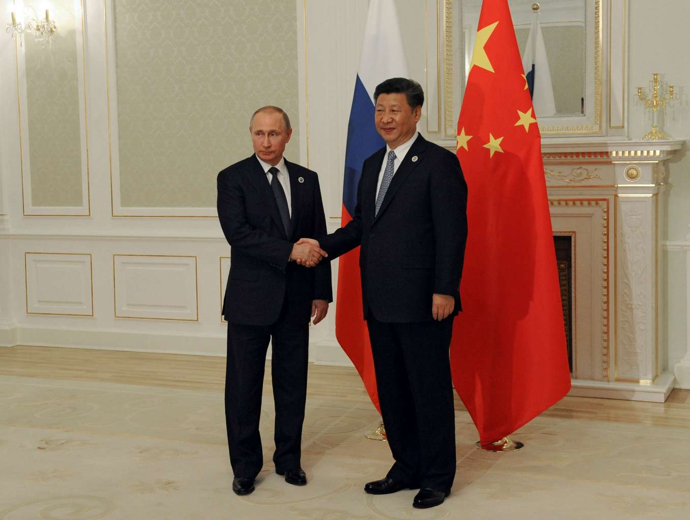 Russian President Vladimir Putin shakes hands with his Chinese counterpart Xi Jinping at the Shanghai Cooperation Organisation (SCO) summit in Tashkent, Uzbekistan, on June 23, 2016.