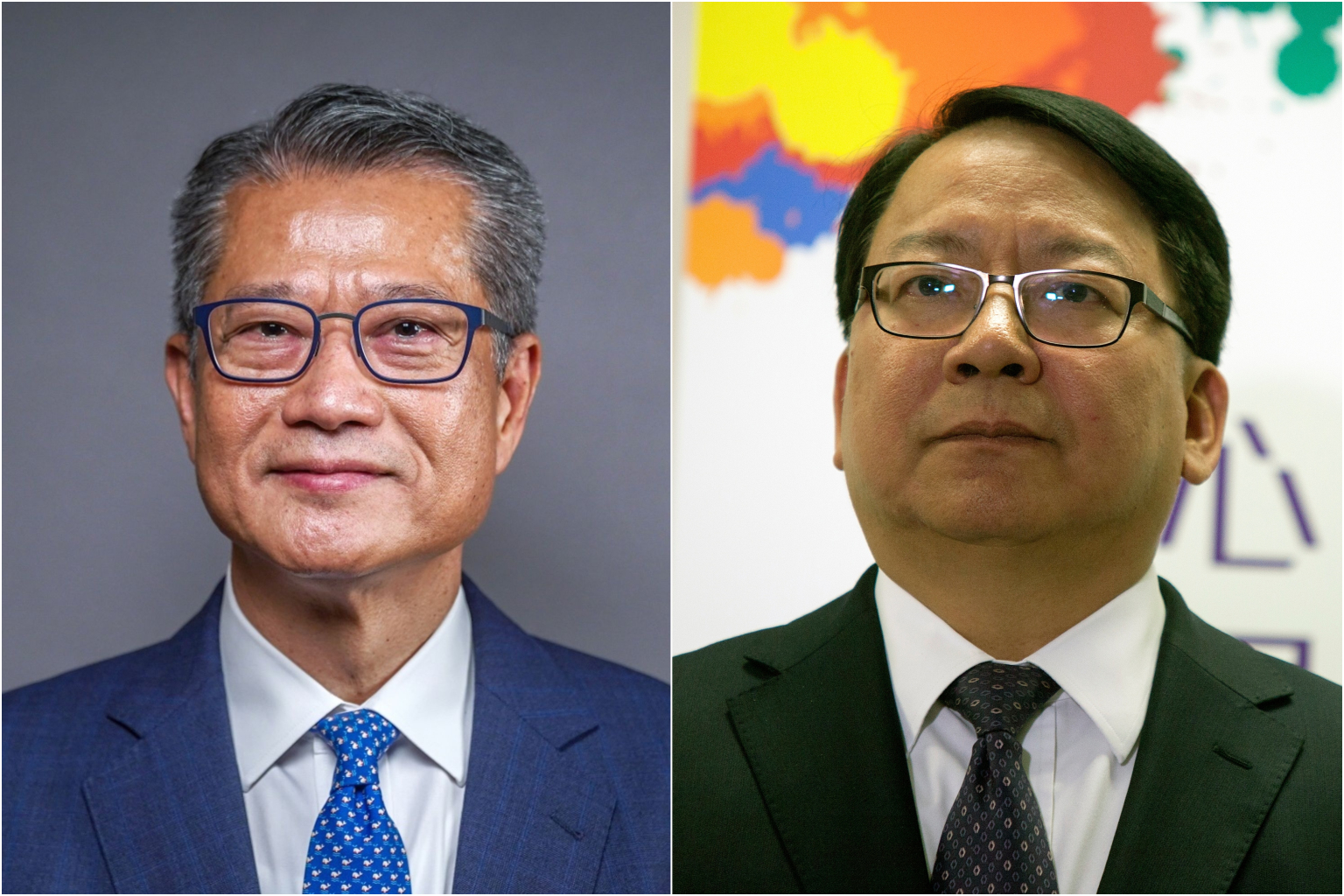 Finance secretary Paul Chan (left) retains his post while Mr Eric Chan becomes the new chief secretary, or No. 2 official.