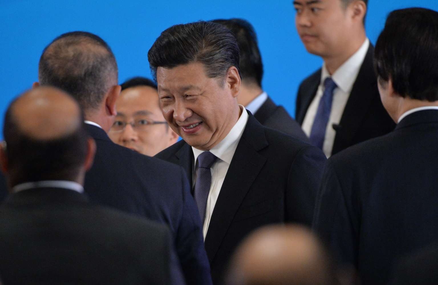 Chinese President Xi Jinping (centre) shakes hands with guests at the fifth regular foreign ministers' meeting of the Conference on Interaction and Confidence Building Measures in Asia (CICA) in Beijing, on April 28, 2016.