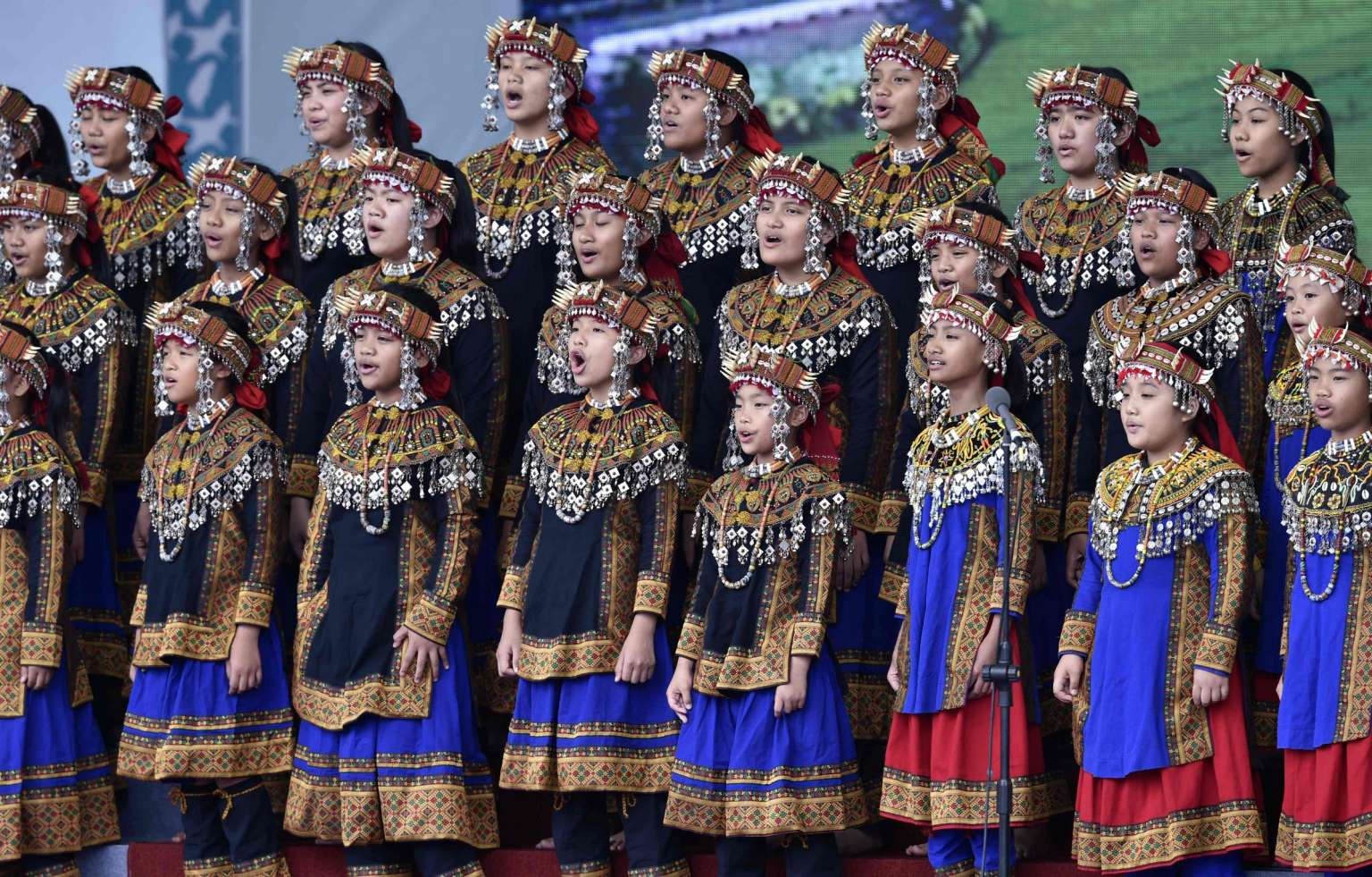 The Aboriginal Puzangalan Choir singing the national anthem during new Taiwan President Tsai Ing-wen's inauguration ceremony in Taipei, on May 20, 2016.