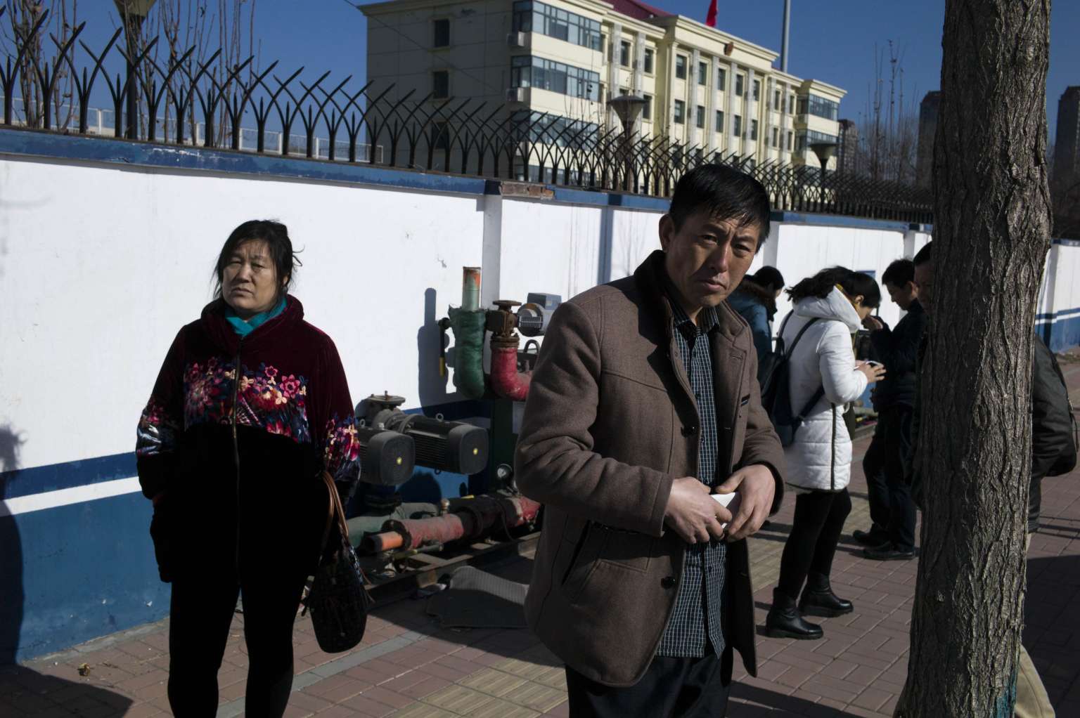 Family members of detained lawyers and their colleagues at the Hexi District Detention Centre on Jan 8, 2016.