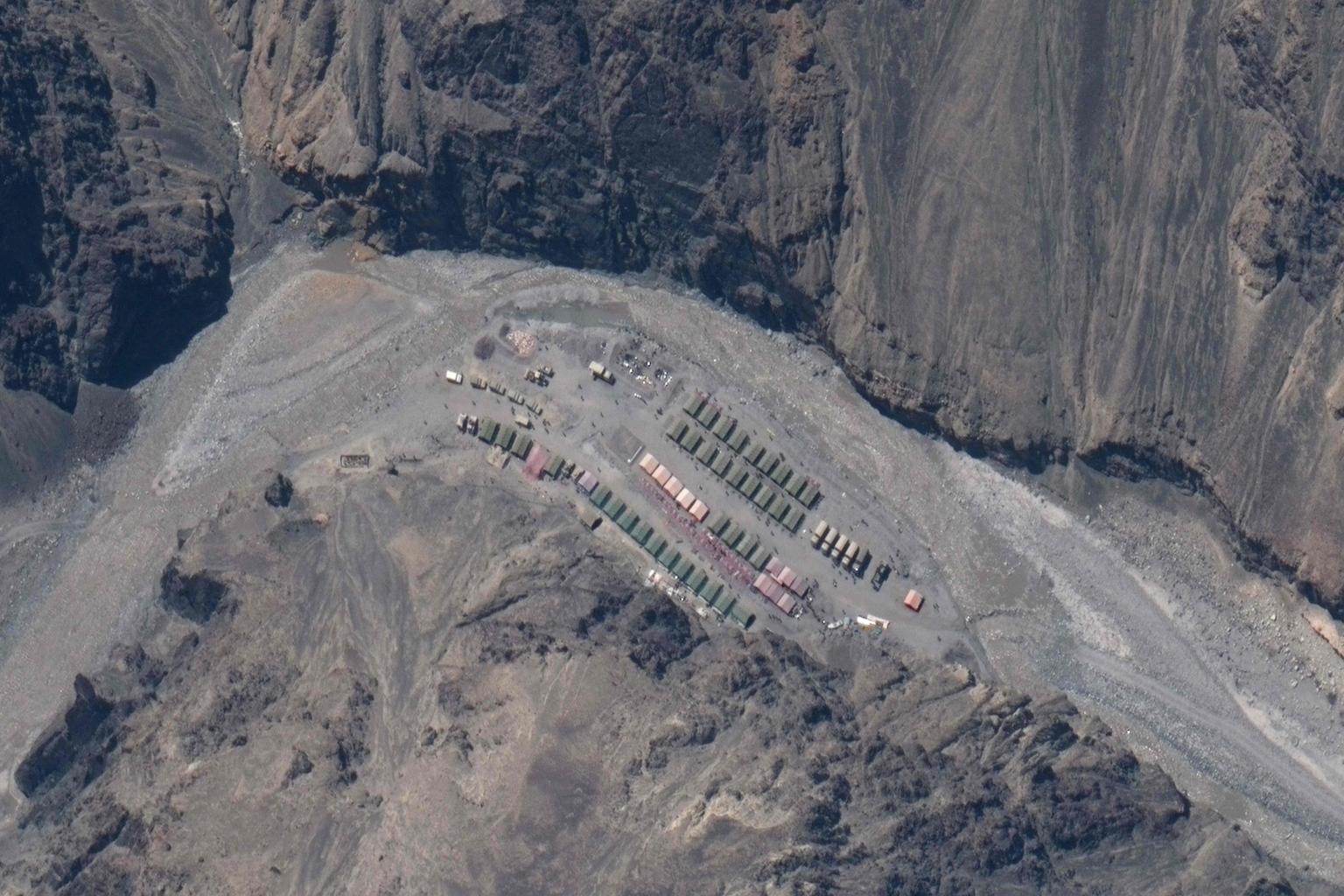 A Maxar satellite image taken on May 22, 2020, shows a Chinese military base in Galwan Valley.