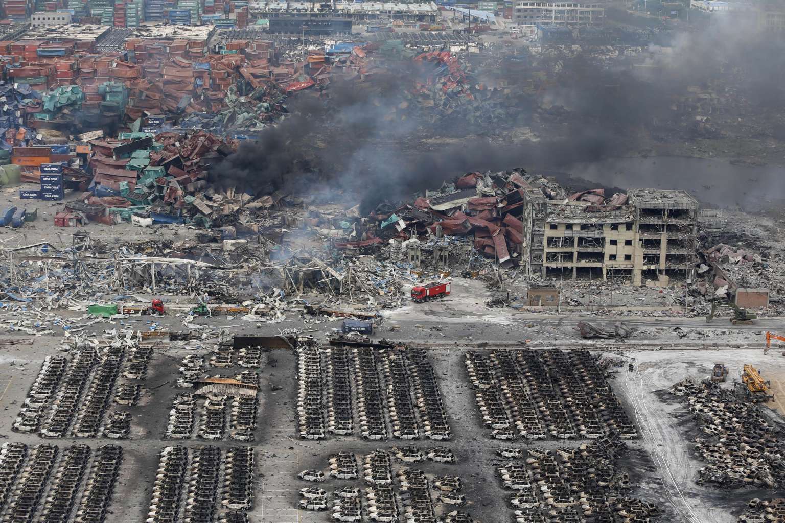 Smoke rises at the site of an explosion in Tianjin on Aug 14, 2015.