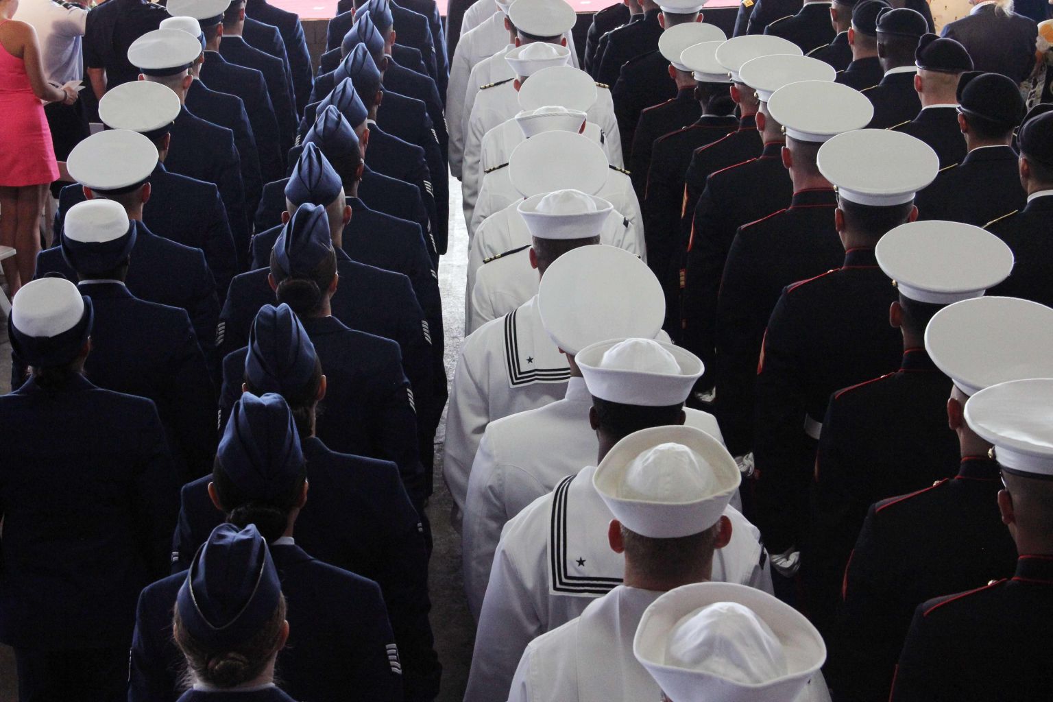 Members of the military attend a change-of-command ceremony for the US Pacific Command in Pearl Harbor on May 30, 2018, in Hawaii.
