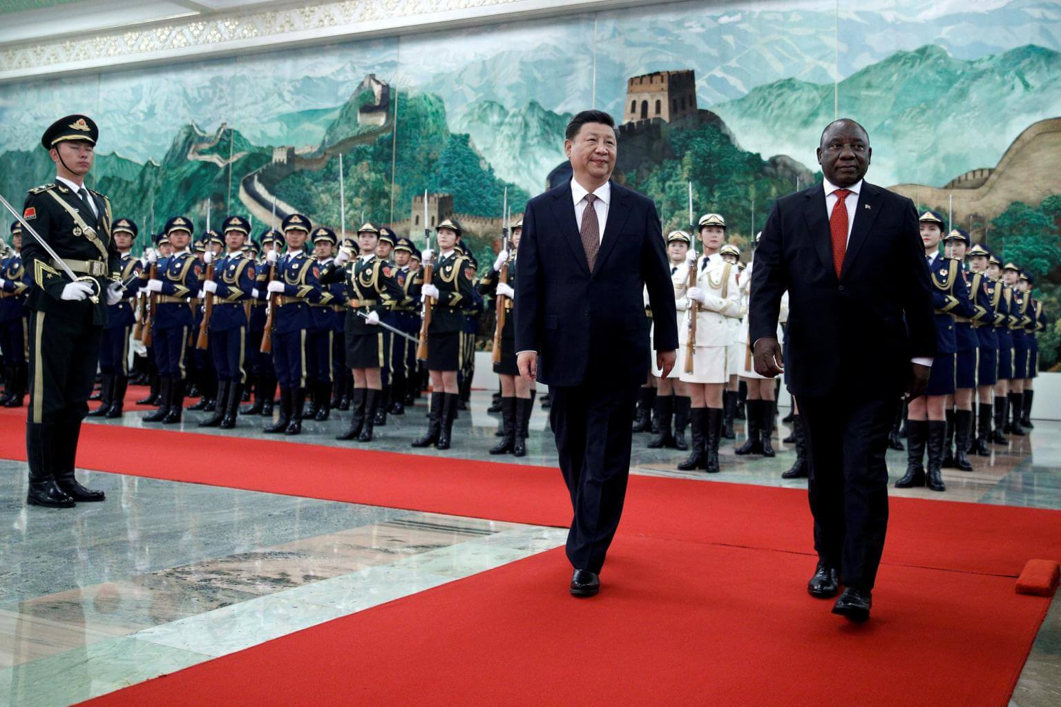 South Africa's President Cyril Ramaphosa and China's President Xi Jinping reviewing the honour guard at the Great Hall of the People in Beijing, China, on Sept 2, 2018.