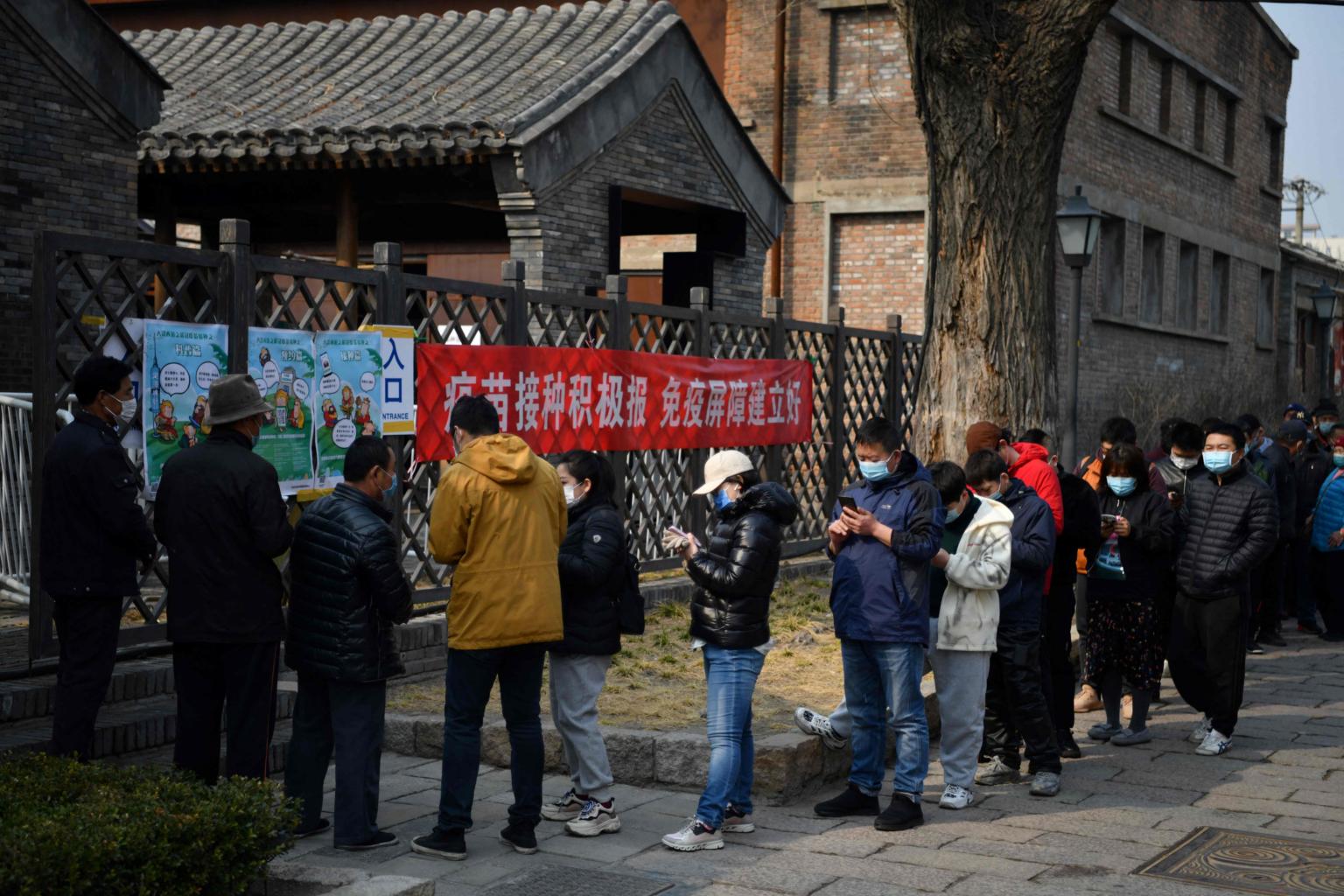 People waiting to receive the Covid-19 vaccine in Beijing on March 8, 2021.