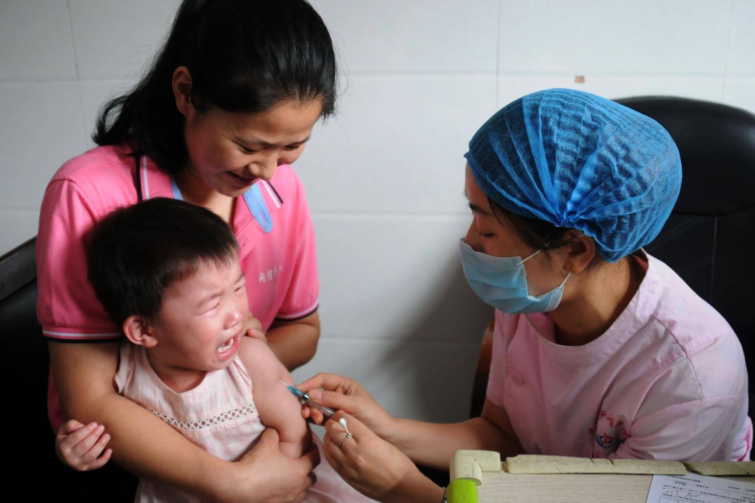 A child receiving a vaccination shot at the local disease control and prevention center in Jiujiang in China's central Jiangxi province, on July 24, 2018.