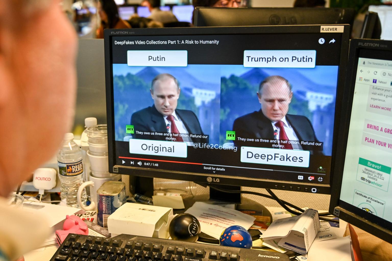 A journalist views a video manipulated with artificial intelligence to potentially deceive viewers.