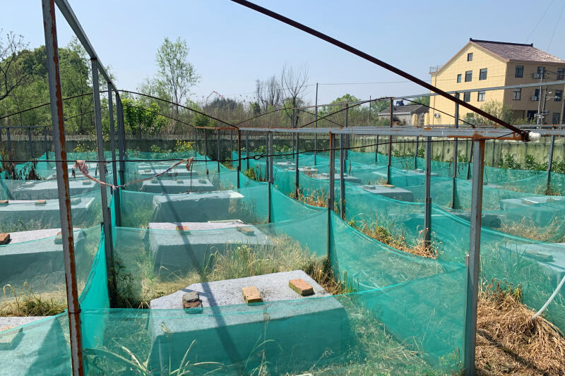 A snake farm with empty wooden slats in Zisiqiao village, Zhejiang province, China, on April 7, 2020.