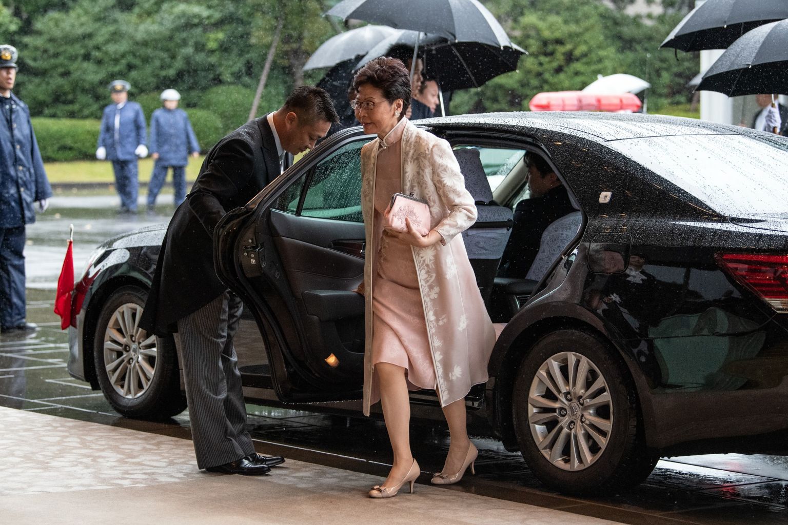 Hong Kong Chief Executive Carrie Lam arrives for Emperor Naruhito's enthronement ceremony at the Imperial Palace in Tokyo, Japan, on Oct 22, 2019.