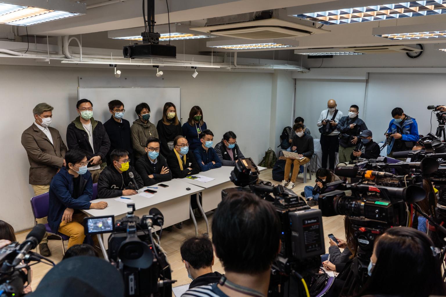 Pro-democracy activists attend a news conference in Hong Kong, China, on Jan. 6, 2021.