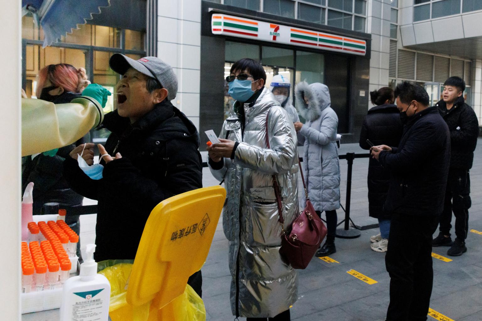 People queueing for Covid-19 swab tests in Beijing on Jan 17, 2022.