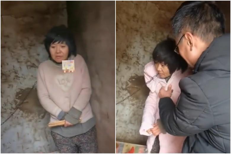 The video of the woman locked in a village hut in Jiangsu province was widely shared on social media over the Lunar New Year holiday.