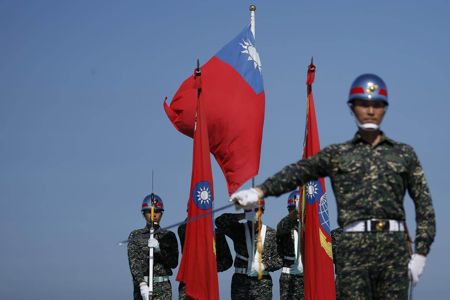 Taiwan Navy personnel prepare to perform during a Naval exhibition drill in Kaohsiung City, Southern Taiwan, on July 13, 2017.