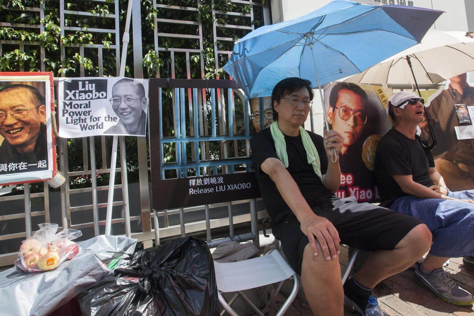 Supporters of Chinese Nobel laureate Liu Xiaobo participating in a vigil, in Hong Kong, on July 13, 2017.