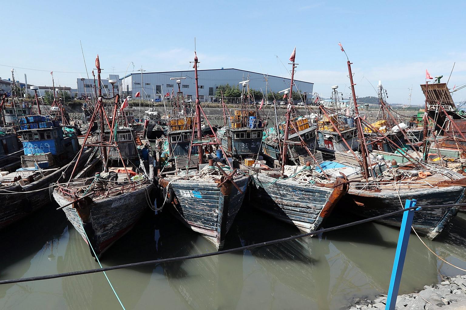 Several Chinese fishing boats that were caught while reportedly operating illegally in South Korea's exclusive zone are moored at a port in Incheon on Oct 10, 2016.