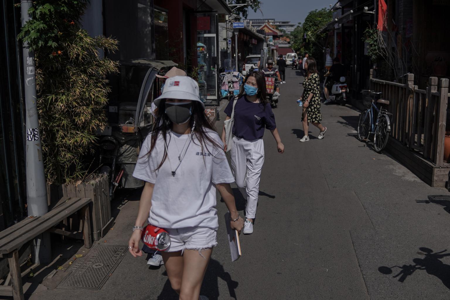 People walk through the Hutong neighborhood in Beijing on June 12, 2020.