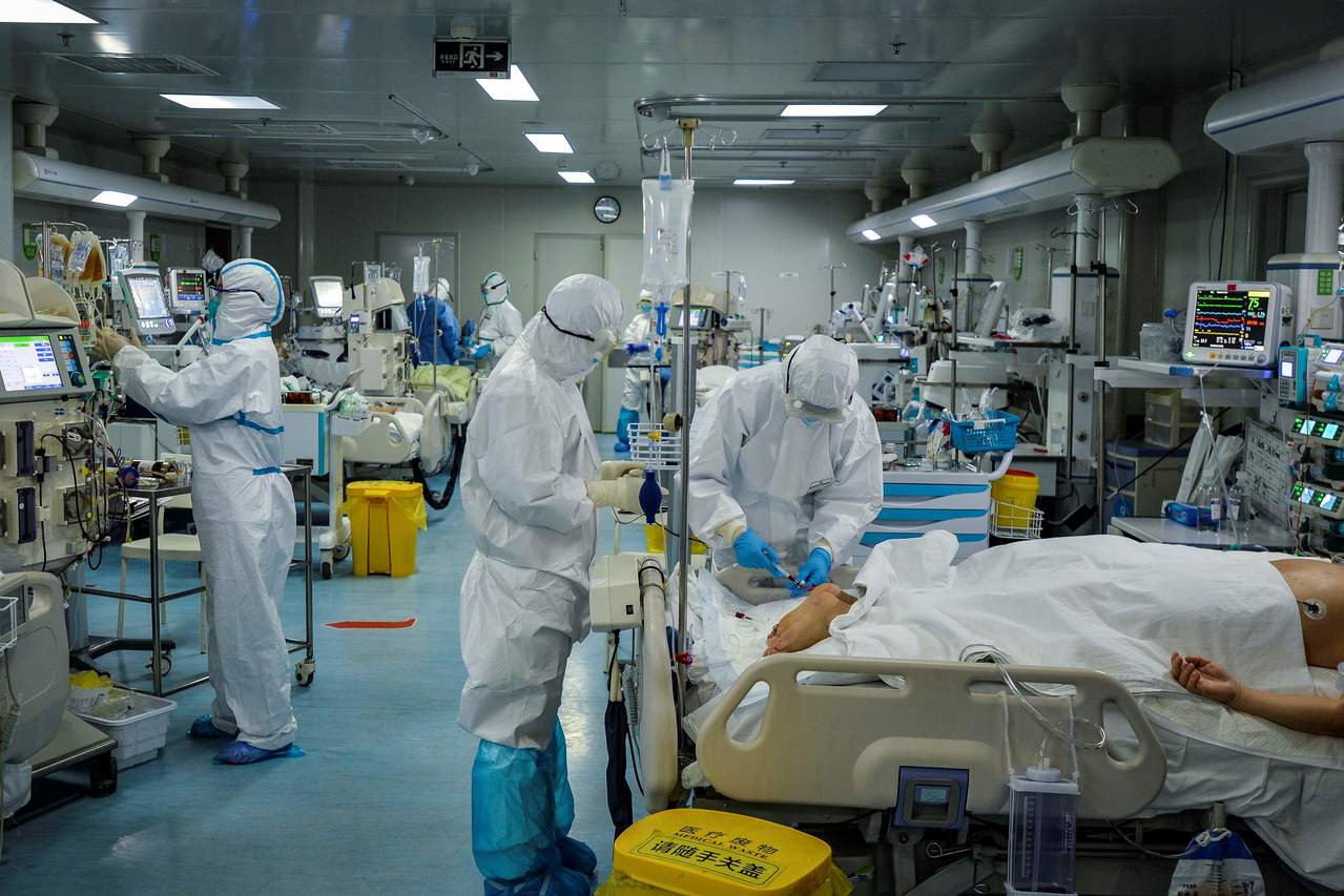 A photo taken on Feb 24, 2020, shows medical staff treating patients infected by the coronavirus at a hospital in Wuhan in China's central Hubei province.
