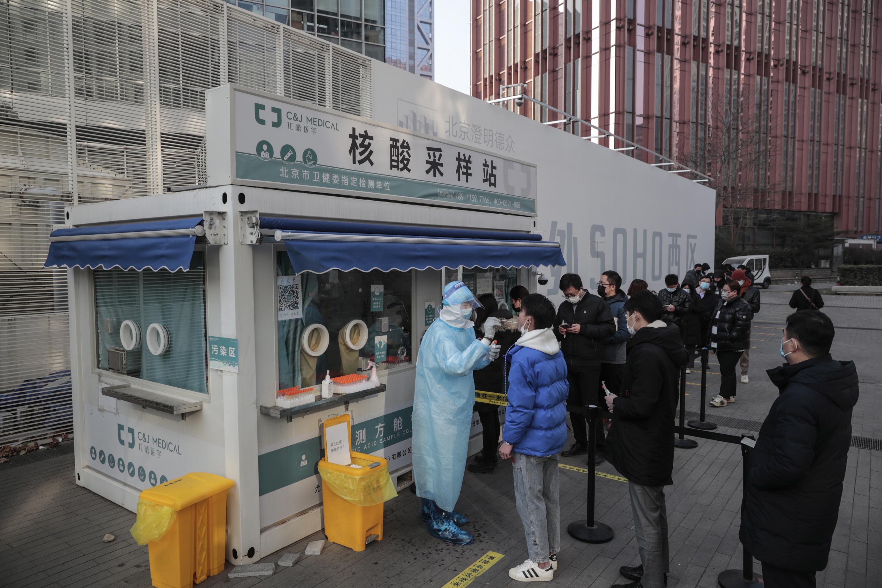 People lining up for Covid-19 tests in Beijing on Jan 14, 2022.