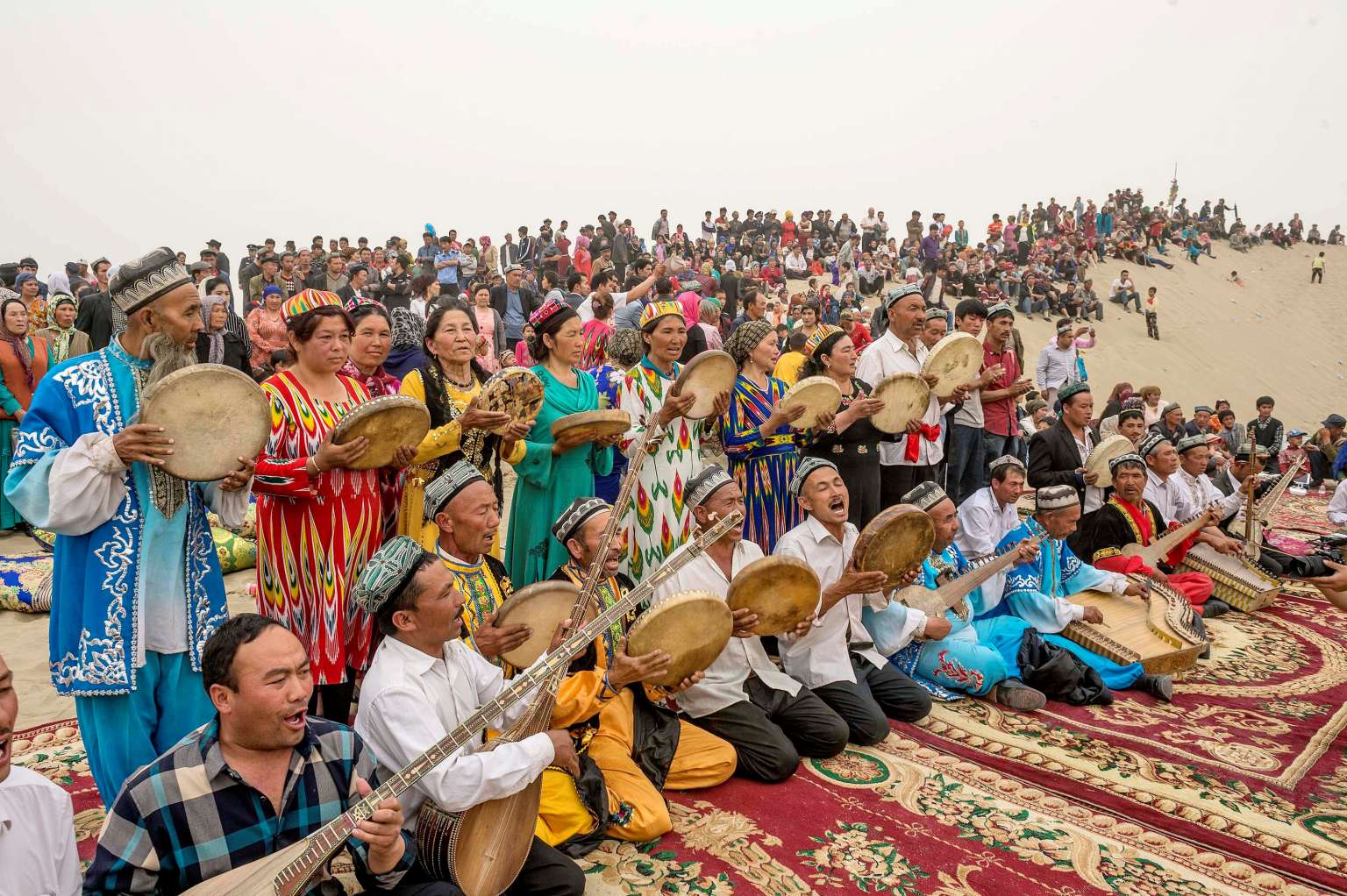 Folk artists play traditional music for tourists at Kashgar, Xinjiang Uighur Autonomous Region, China on May 2, 2016.